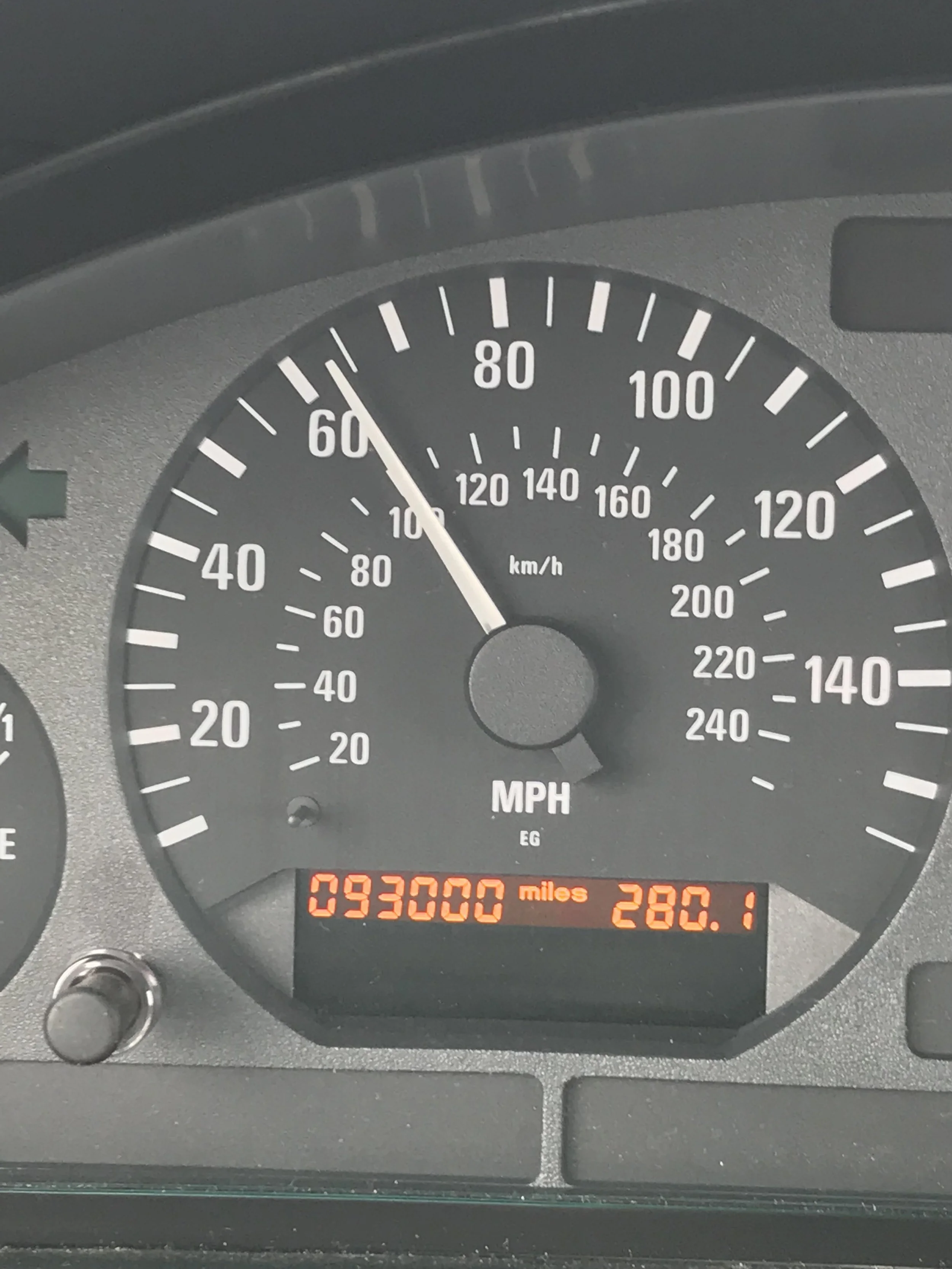 My trusty 318ti hit 93,000 miles somewhere near Springfield, IL. And yes I was looking at the road while this was taken!